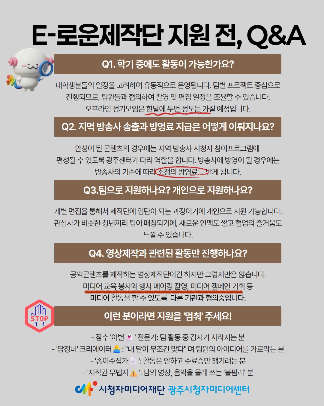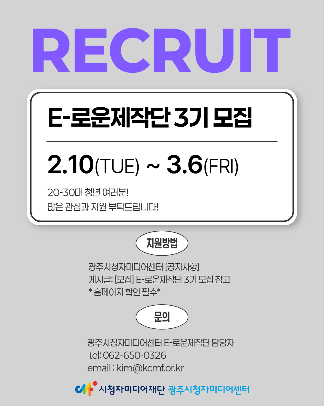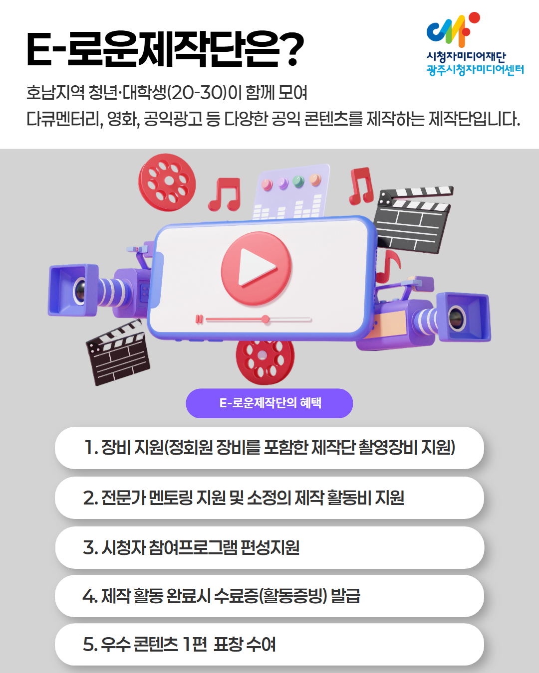 🔥지원방법- (광주시청자미디어센터-공지사항 '[모집] E-로운제작단 3기 모집'(~3.6.(금)까지 참고)